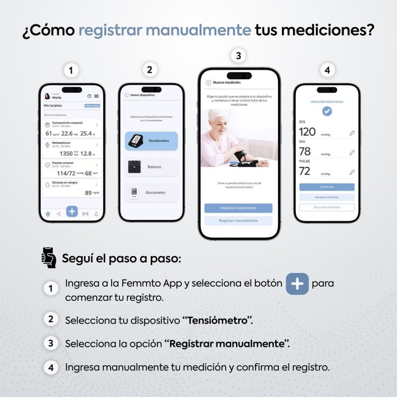 Circunferencia del brazalete mínima de 22cm y máxima de 32cm.