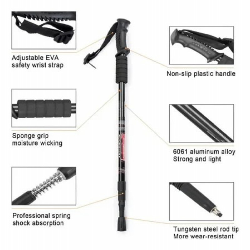 Nuestro bastón de senderismo está diseñado a medida para ofrecer estabilidad y reducir la carga en tus piernas, ideal para hombres y mujeres que buscan una experiencia de trekking más segura y cómoda. Equipado con características avanzadas, este bastón es esencial para cualquier aventurero.