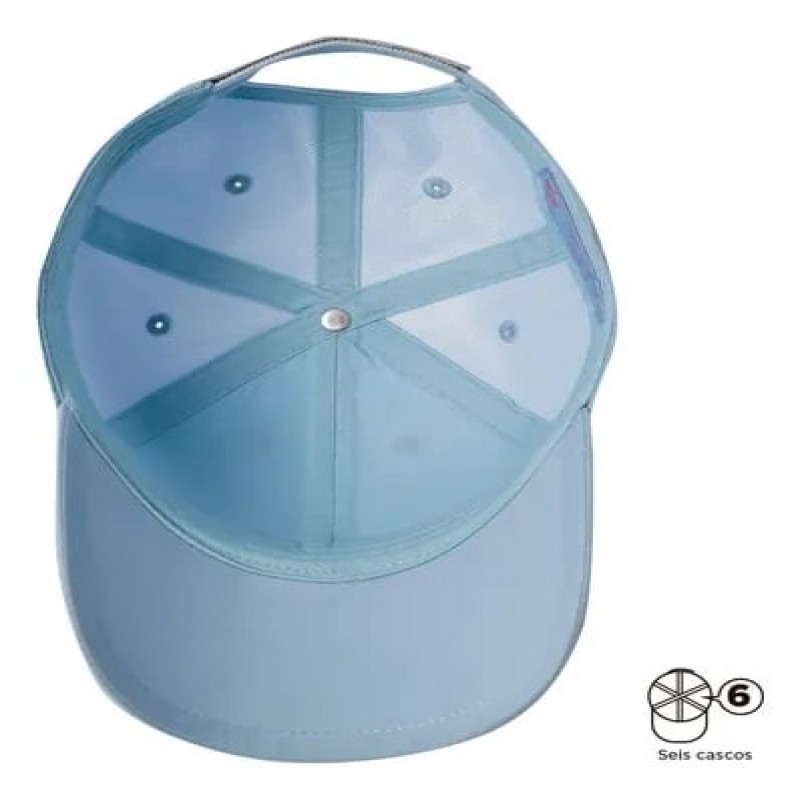 Su diseño beisbolero de seis cascos ofrece comodidad y un ajuste preciso gracias a su cierre en velcro.