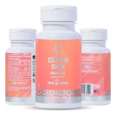 Suplemento vegano de You're Natural, 60 cápsulas. Diseñado para mejorar la piel, combatir el acné y nutrir desde dentro.