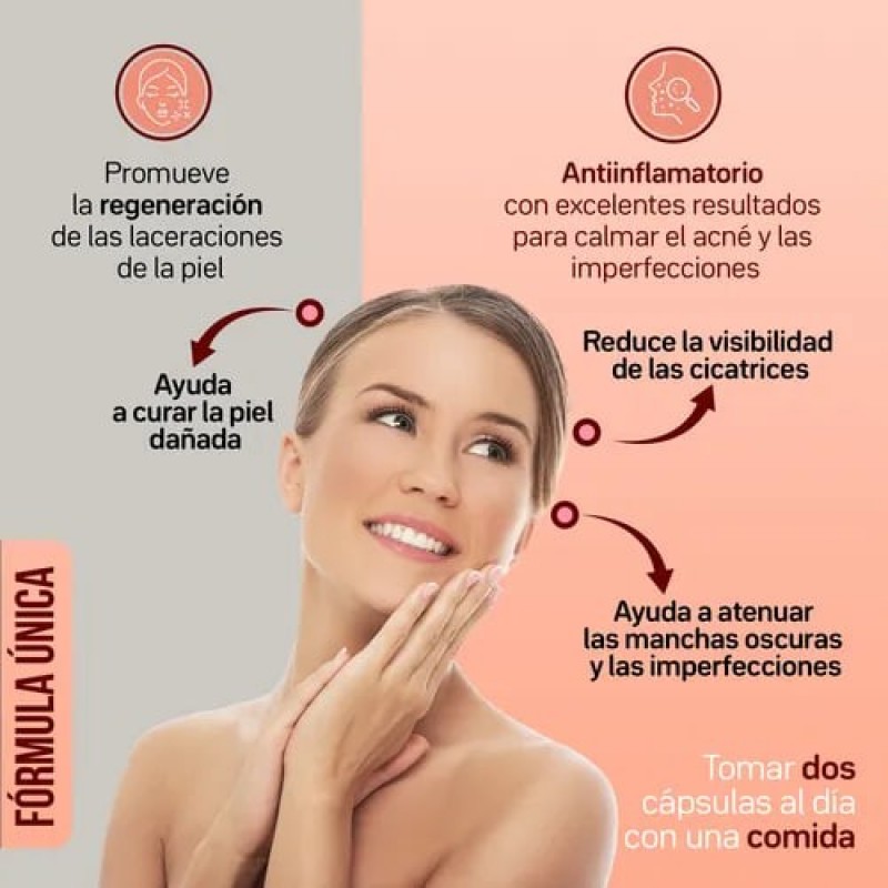 Combate imperfecciones con Niacina, Vitaminas C, A y E, y Zinc.